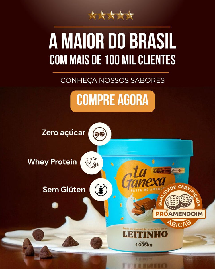 Alfajor de LeitinhoO sabor mais famoso da La Ganexa agora na versão alfajor! Alérgicos: Contém amendoim, derivados do leite e pode conter avelã. ________________________ INGREDIENTES Pasta de amendoim sabor Leitinho La Ganexa, maltitol, gordura vegetal, farinha de arroz, amido de mandioca, leite desnatado em pó, batata desidratada, polidextrose,...