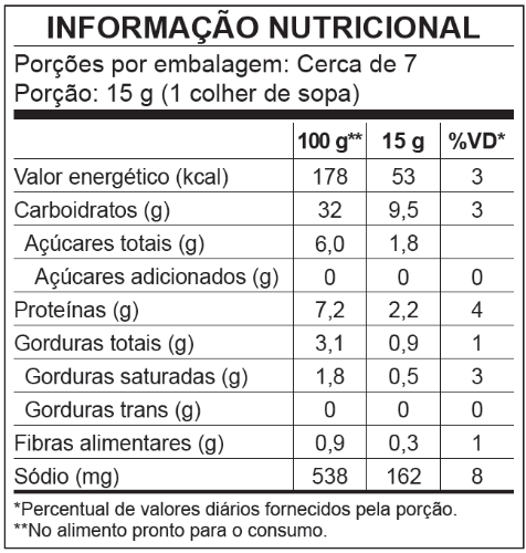 Panqueca: Farinha de aveia, leite desnatado em pó, fécula de mandioca, gotas sabor chocolate ao leite zero adição de açúcares (gordura vegetal, cacau em pó, soro de leite, leite em pó integral, edulcorante maltitol, emulsificantes poliglicerol polirricinoleato, lecitina de girassol e aromatizantes), whey protein sabor baunilha (proteína de soro do leite concentrada, aromatizante e edulcorante sucralose), sal, clara de ovo desitradata, fermentos químicos INS 500(ii), INS 541(i) e INS450(i), estabilizante INS415 e edulcorante sucralose. CONTÉM LACTOSE. ALÉRGICOS: CONTÉM DERIVADOS DE AVEIA, SOJA, LEITE E OVOS. PODE CONTER TRIGO, TRITICALE, CENTEIO, CEVADA, AMENDOIM, AMÊNDOA, AVELÃS, CASTANHA-DE-CAJU, CASTANHA-DO-PARÁ, NOZES E CASTANHAS. CONTÉM GLÚTEN.